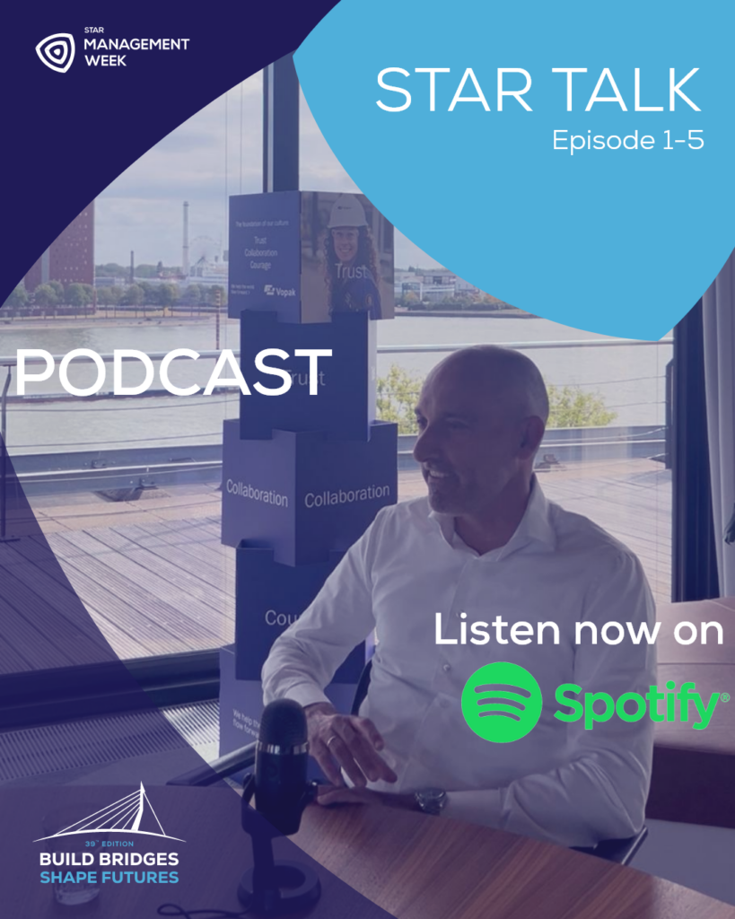 This year, STAR Management Week brings something new: the STAR Management Week Podcast. In each episode, an inspiring speaker shares insights on different current and thought-provoking topics, offering listeners a unique glimpse into the minds of top business leaders. Hosted by our team, these conversations go beyond the surface. Expect real insights into leadership, innovation, and the trends shaping tomorrow’s industries: all tailored to ambitious students and young professionals like you.